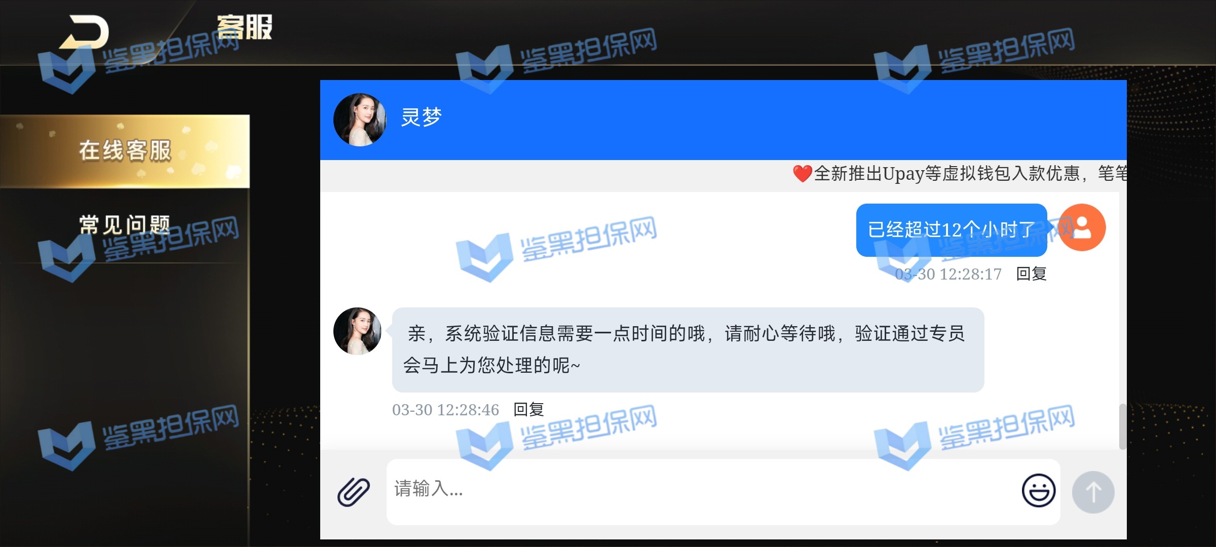 3.用户提交维权申请后资料不齐全,需在一周内补齐鉴黑担保网客服要求的资料,若超过一周时间没有完善维权信息,维权将因资料不全拒绝受理;