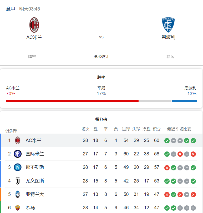 4、上轮联赛3-1大胜诺维奇,成功止颓反弹,士气得到一定程度恢复。