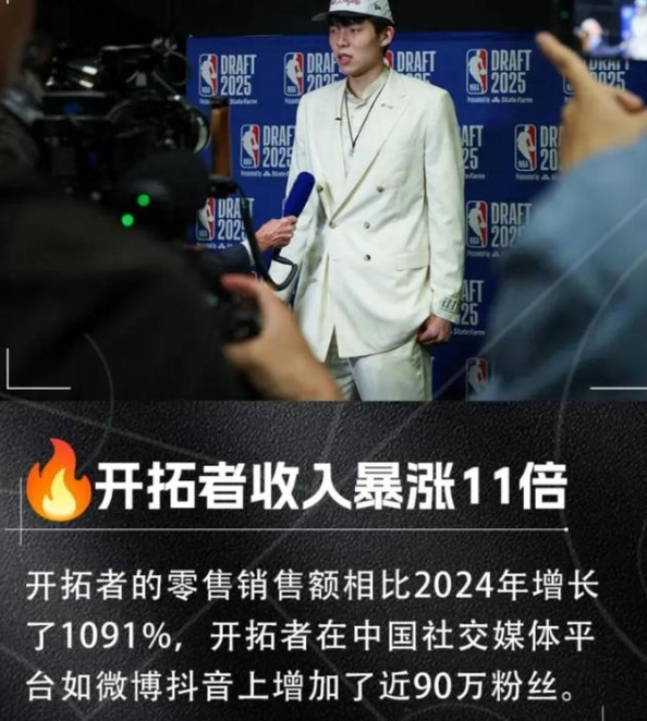 据开拓者球队官员透露,自选中杨瀚森以来,开拓者的零售销售额相比2024年增长了1091%,其TikTok账号浏览量超过3000万次。而在一个月不到时间里,开拓者在中国社媒平台的粉丝暴增了近90万,这期间的粉丝互动量甚至超过了其他所有NBA球队的总和。